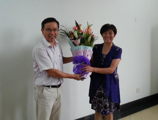 在第23个教师节来临之际,9月9日下午,学校领导杨大明副校长,校党委委员、组织部部长宣绍龙一同到学院,亲切看望慰问了枫林网 院长、市专业技术拔尖人才俞军老师,代表学校致以诚挚的问候并送上了鲜花。