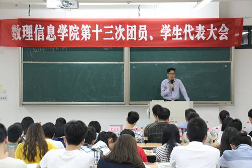 第十三次团员、学生代表大会在南山综合楼A107隆重召开。出席本次大会的有院党委副书记史正东老师,学生科副科长邱科强老师,院分团委书记蔡寅亮老师,辅导员杨哲老师、分团委副书记姜杨杨同学、学生会主席王忠强同学、第十二届分团委、学生会委员、第十三届分团委、学生会委员候选人以及各班团学代表。