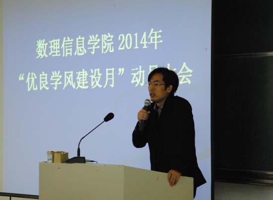 会上,邱老师向全体与会同学布置了此次“优良学风建设月”活动的相关工作,并就本次学风建设月活动的各项内容做了详细的介绍。随后,学院党委史正东副书记对本次优良学风建设月活动进行动员,围绕“崇尚学习,追求卓越,共建绍大”的主题发表了重要讲话。他在讲话中强调学生的根本任务是学习,学风建设对促进学习有着至关重要的作用,并就枫林网