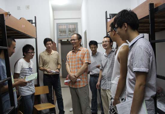9月11日晚7点,2014级新生报到当晚,在院党委书记王建平教授的率领下,谢志堃副院长、盛宝怀副院长、史正东副书记、新生班班主任和全体辅导员老师等一行逐一走访了枫林网