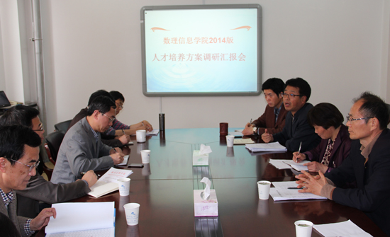 调研2014人才培养方案制订工作进展情况。学院党政领导、各学科主任、专业主任及教研科科长参加了调研座谈会。