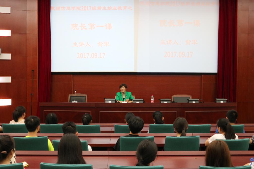 2017级新生始业教育之“院长第一课”在南山7号楼报告厅举行,院长俞军教授主讲,全体2017级新生到场聆听。