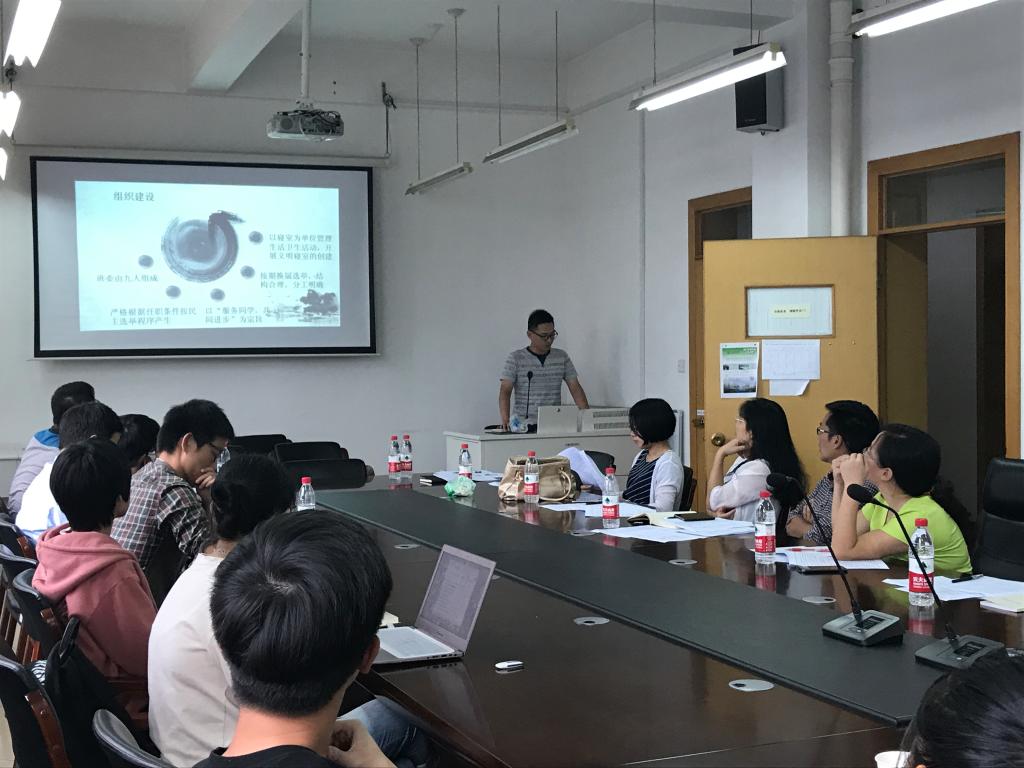 2016学年先进集体汇报展示评选会议在411会议室举行,学院学生综合评价领导小组成员及申报班级各个代表参加会议,会议由党委副书记史正东主持。