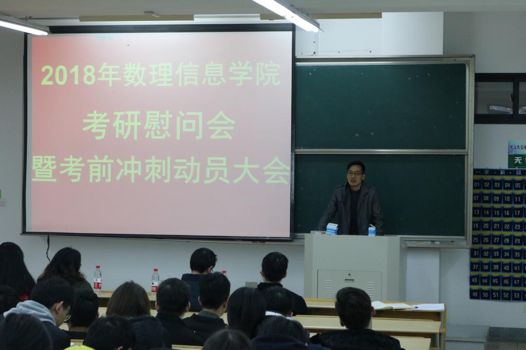 考研慰问会暨考前冲刺动员大会在南山6号楼A207教室举行。学院党委副书记史正东,辅导员汪秋月老师,4位考研导师鄢永红、缪春芳、姚博、于梅以及114位2018年枫林网