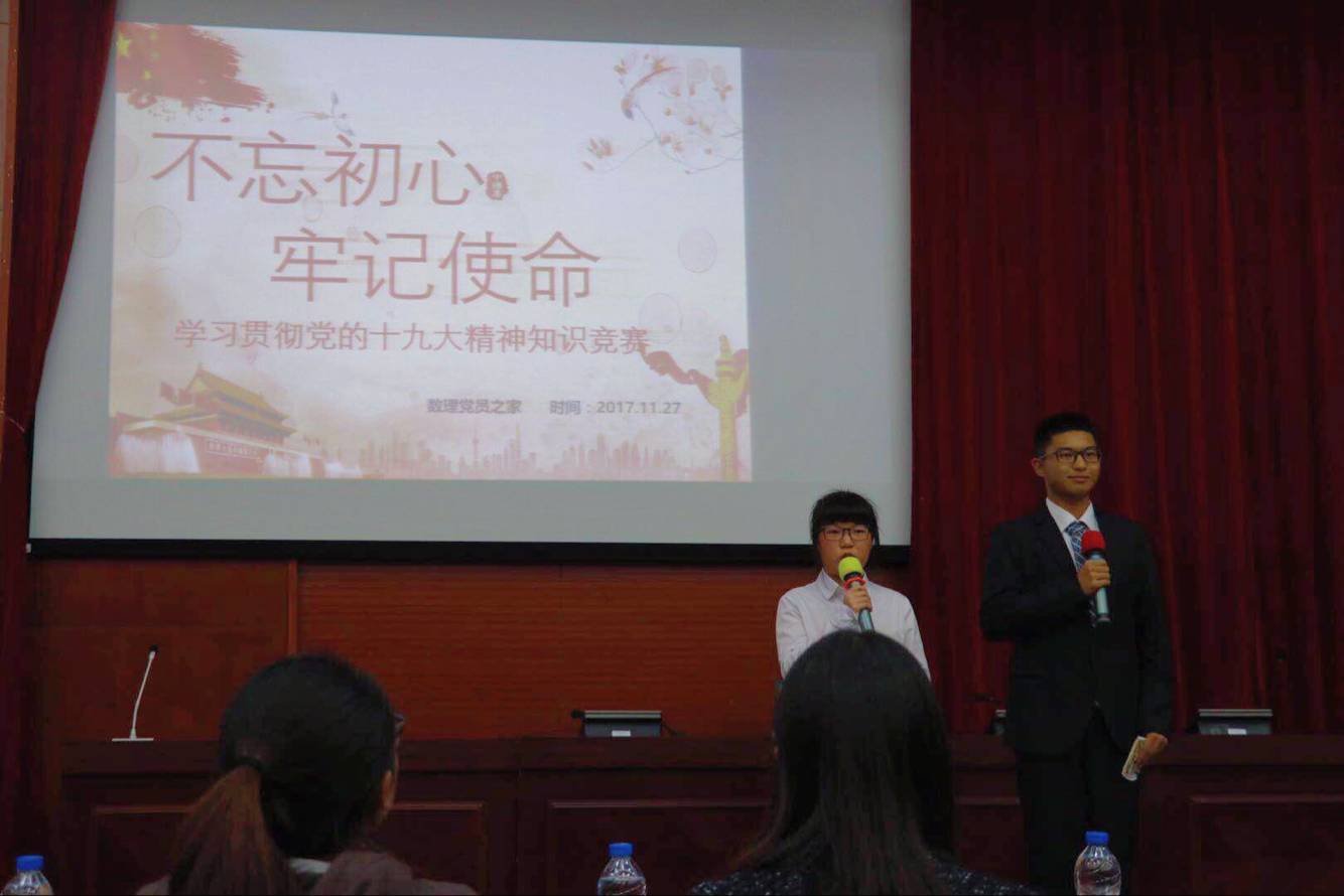除了通过党委理论中心组、党支部大会、教职工大会等渠道开展学习,还将学习搬到了考场、移到了网络、搬进了比赛现场。近期,学院便采用现场知识竞赛和网络知识竞赛两种形式,组织举办了“不忘初心牢记使命”学习贯彻党的十九大精神知识竞赛活动,全院师生党员、入党积极分子、入党申请人等热情参与。现场知识竞赛分笔试初赛、“九宫格”复赛、对抗决赛三个阶段开展。经过激烈的角逐,最终6支队伍进入决赛现场。决赛设置风采展示、两两对抗、三足鼎立等环节,设有必答题、抢答题、判断题、填空题、视频题等。各支队伍沉着冷静,竞争激烈,比赛间隙还开展了红歌竞猜活动,气氛热烈。以十九大知识竞赛活动为突破口,枫林网