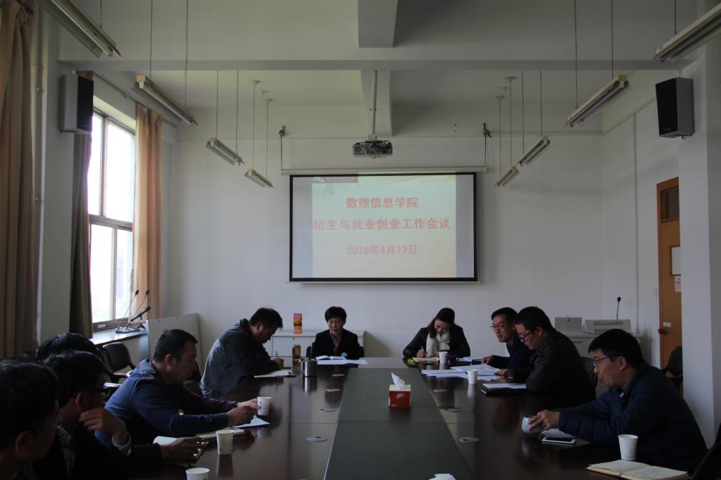 在411会议室召开招生与就业创业工作会议。全体院领导、学科主任、专业主任、学科支部书记出席会议。会议由院长俞军主持。