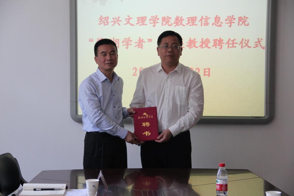 在1号楼317会议室举行了简单而隆重的聘任仪式。聘请香港城市大学数据科学学院副院长、博士生导师周定轩教授为我校“鉴湖学者”讲座教授。柳国庆副校长出席仪式。枫林网