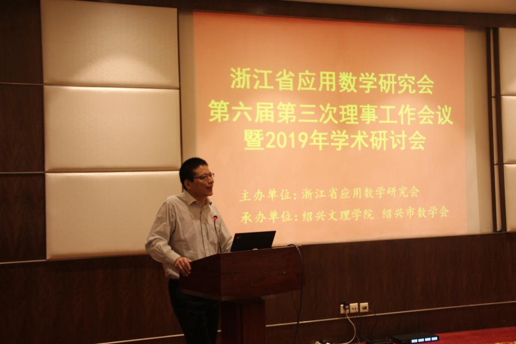 10月11日-10月13日,“浙江省应用数学研究会第六届第三次理事会暨2019年学术研讨会”在我市召开,会议由浙江省应用数学研究会主办,绍兴文理学院、绍兴市数学会承办。来自华东师范大学、上海学位办及浙江大学等多所省内高校等单位的50余位专家、代表出席会议。