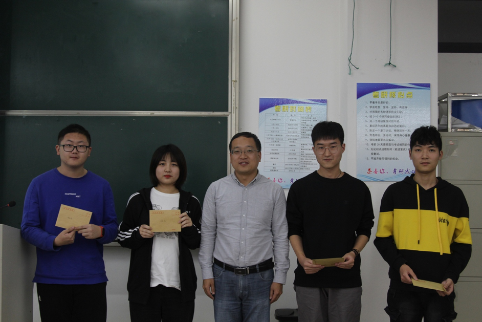 慰问会的最后由学院党委副书记庞飞向2016级各班考研负责人代表发放了慰问品。