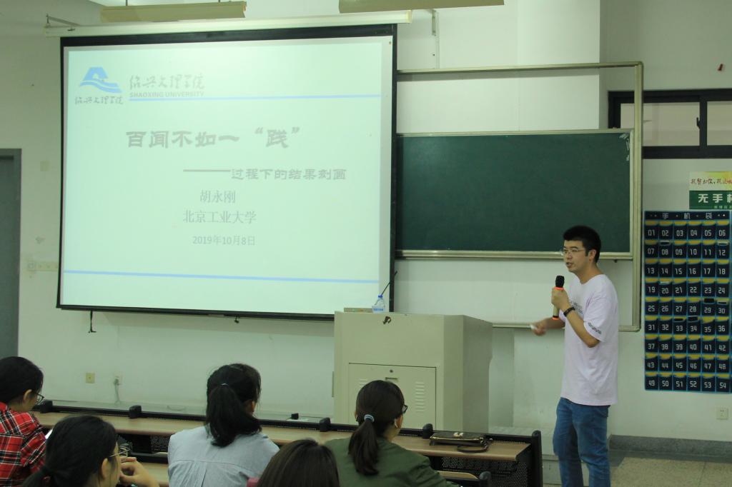 数学与应用数学(师范)专业:邀请2014届数学专业省级优秀毕业生胡永刚,主讲百闻不如一“践”——过程下的结果刻画。本科时曾获得高教社杯全国数学建模国家二等奖,2014年考入北京工业大学应研究生,取得硕博连读资格。迄今发表论文5篇,其中4篇SCI,1篇核心期刊。