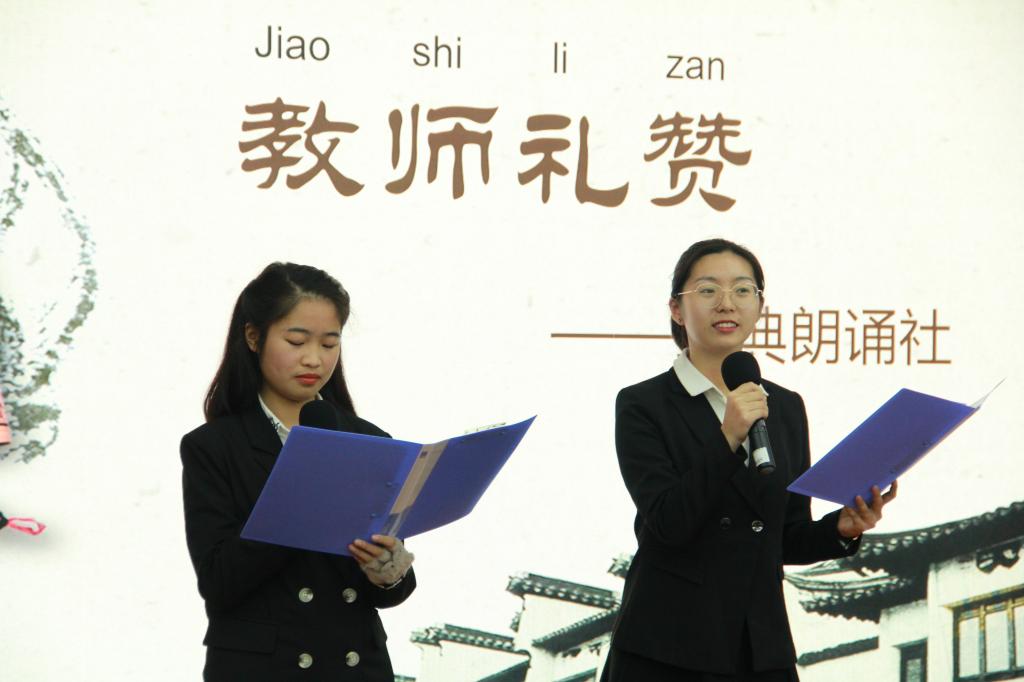 演讲结束后,进入计分环节。在等待的过程中,经典诵读社的两位同学带来了节目——《教师礼赞》,温柔而深情的朗诵让我们享受了一场精彩的听觉盛宴。随后,播放了感恩教师的沙画表演视频。