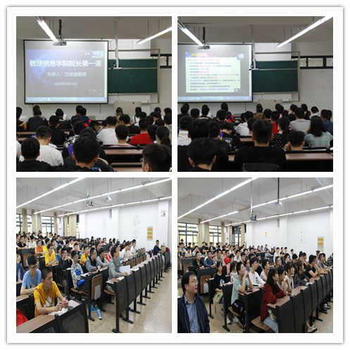 院长方泽波教授主讲,全体辅导员、班主任、班助和2020级新生到场聆听。