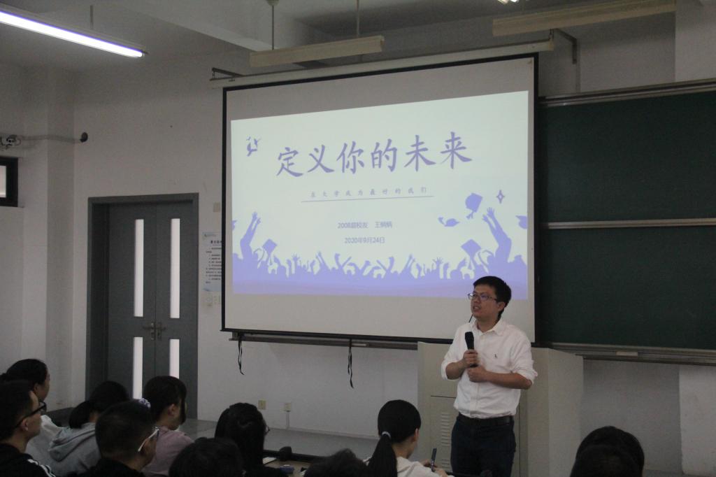 各专业优秀校友讲座通过对本专业的专业人才及知名校友情况介绍,帮助新生了解专业学习特点,强化专业思想,培养学习兴趣,激发自主学习动力。如数学与应用数学(师范)专业邀请了2008届绍兴文理学院毕业生王炳炳老师前来开展讲座。王老师就职于宁波市古林职业高级中学,是浙江省教坛新秀,他主讲了“定义你的未来——在大学成为最好的我们”,并从认识我的大学和我的大学能力两大方面对此次主题讲座展开了详细的讲述。