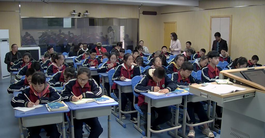 图2数学系俞宏毓副教授在稽东镇中学进行课堂观察实验,指导教育科研