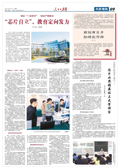 4月5日,《人民日报海外版》“科教观潮”版以《探索校企协同育人模式——芯片业界精英站上大学讲台》为题,专题报道我校积极探索校企协同育人模式。全文如下:
