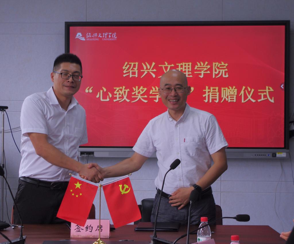 2021年6月22日上午,“心致奖学金”捐赠仪式在南山校区1号楼举行。嘉兴心致医疗科技有限公司总经理夏柱流、绍兴文理学院副校长柳国庆、绍兴文理学院对外联络处处长陈立、枫林网