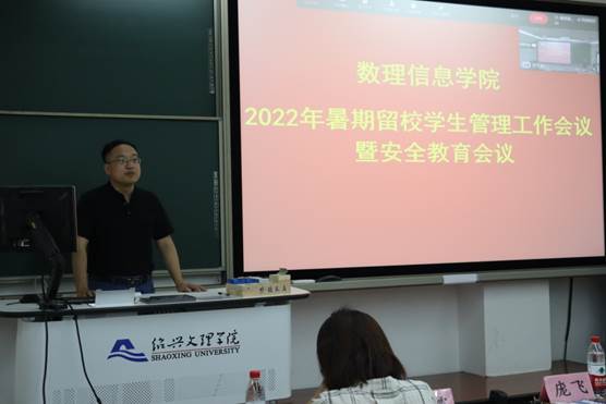 在综合楼A105召开暑期留校学生管理工作会议暨安全教育会议,出席本次会议的有学院党委副书记庞飞,全体辅导员和全体暑期留校学生。