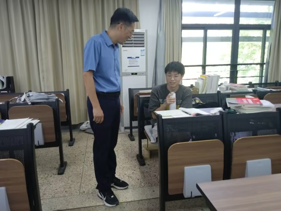 随后,学院党委书记史正东,党委副书记庞飞赴南山6号楼A203等教室走访看望暑期留校复习考研的学生。史正东详细询问了同学们的复习备考情况,了解他们暑期留校生活与学习安排。他对同学们冒着酷暑留校复习备考给予充分赞扬,他鼓励考研同学要进一步明确目标,按照计划脚踏实地,坚定信心,并要注意劳逸结合。