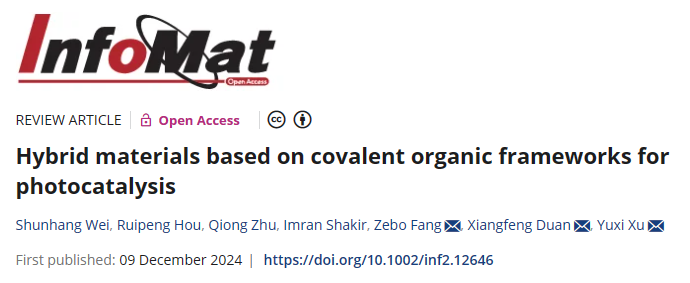 近日,楓林網位顺航博士、方泽波教授在中科院一区期刊《InfoMat》发表题为“Hybrid materials based on covalent organic frameworks for photocatalysis”的综述论文。