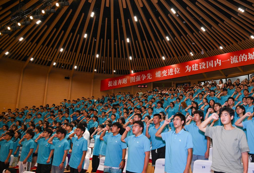 的学科专业设置、师资力量建设和师生在科研、竞赛等方面取得的成绩,并送给新生三句“成长箴言”:一要夯实基础,具备“长线开挂”的底气;二要跨界融合,解锁“创新盲盒”;三要知行合一,既能“仰望星空”追真理,也能“脚踏实地”解难题。