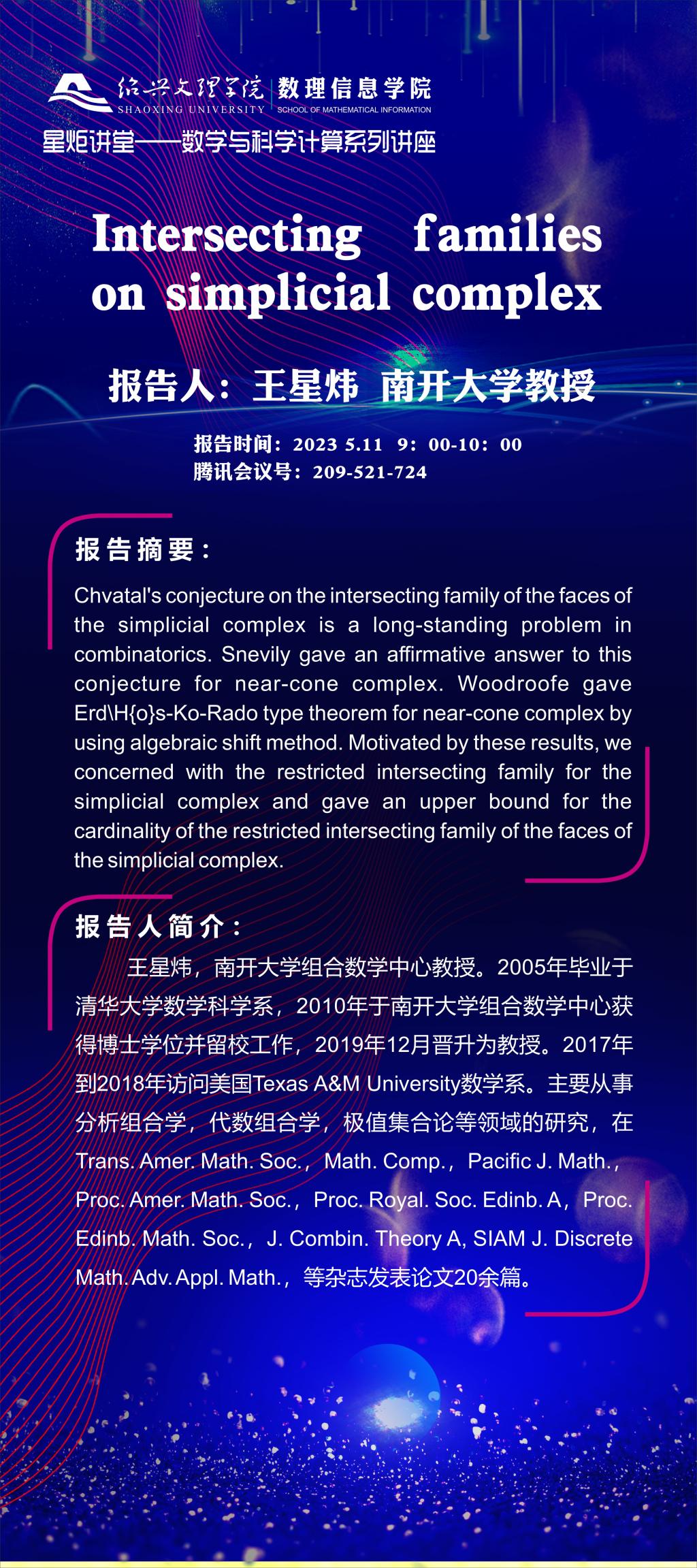南开大学 王星炜教授:Intersecting families on simplicial complex
