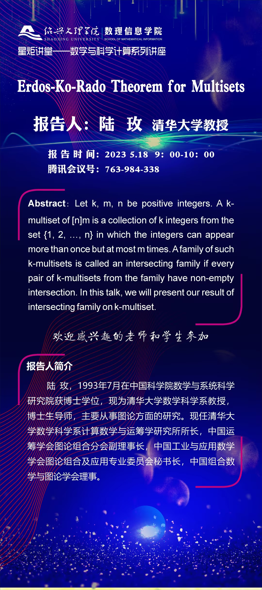 清华大学 陆玫教授:Erdos-Ko-Rado Theorem for Multisets