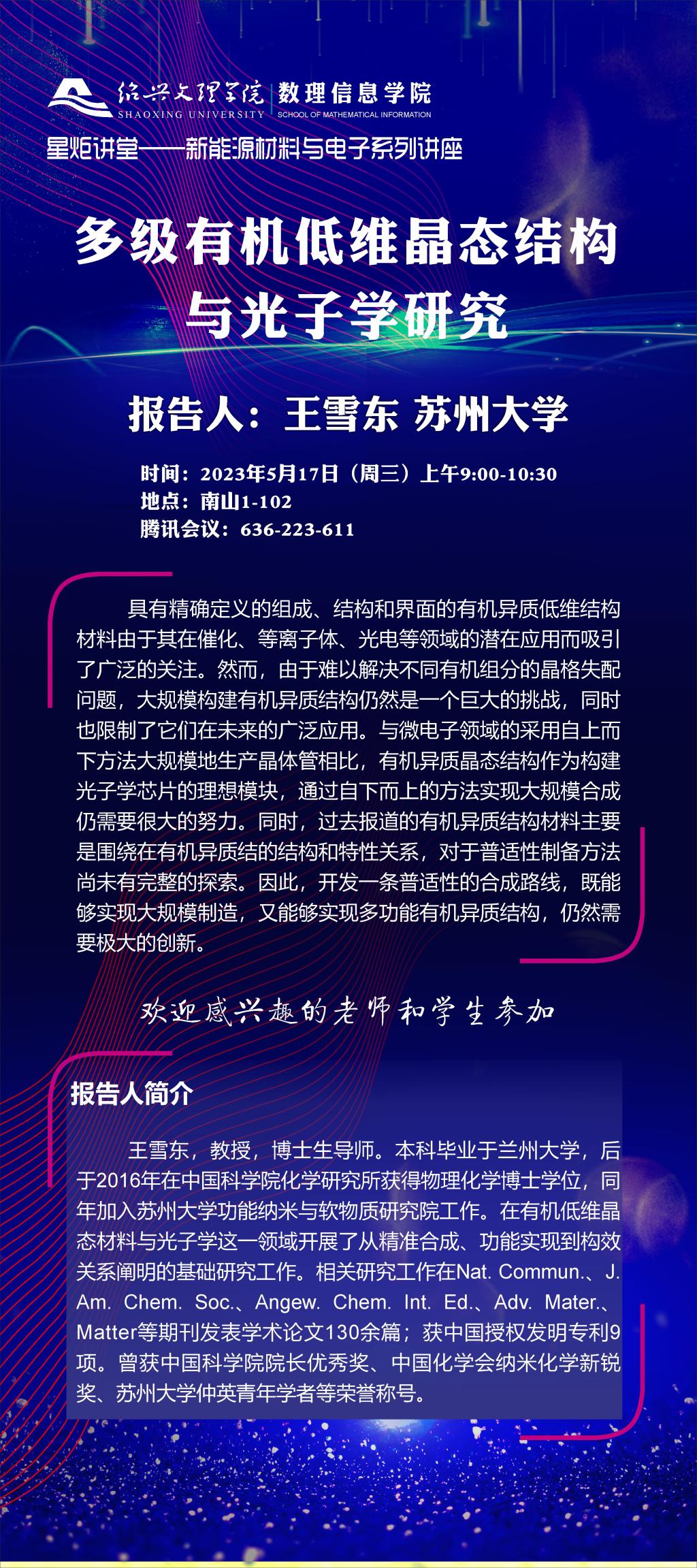 苏州大学 王雪东教授:多级有机低维晶态结构与光子学研究