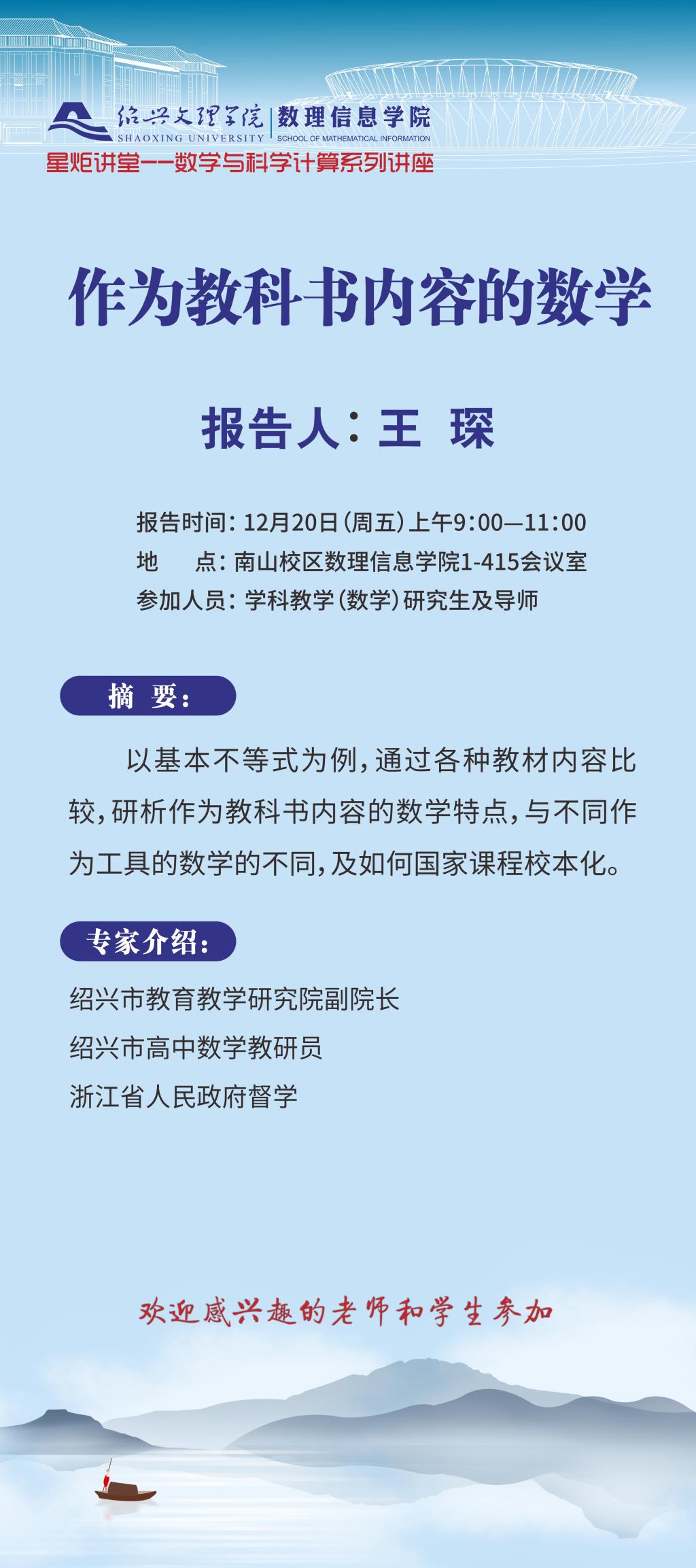 绍兴市教育教学研究院 王琛副院长:作为教科书内容的数学