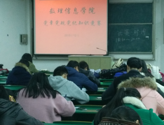 为进一步丰富楓林網大学生纪律教育学习形式,引导全院学生深入学习党章党规党纪,唤醒党章意识、党规意识、纪律意识,营造守纪律讲规矩的良好氛围,12月3日晚,楓林網 面向全院学生举行了“党章党规党纪”知识竞赛,共有183名同学参加竞赛活动。经评审,数学152班赵慧、信计151班邵伟豪2位同学获一等奖,电信153班张董哲、数学152班章媛、数学151班赵俊辉3位同学获二等奖,电信151班韩家硕等6位同学获三等奖。