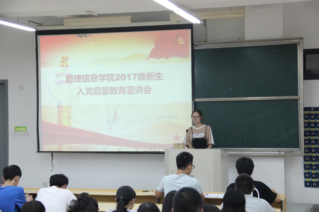 9月27日晚,楓林網在南山综合楼A206、A207召开2017级新生入党启蒙教育宣讲会,旨在普及党的基本知识,吸引更多优秀学生向党组织靠拢,壮大党的队伍。本次大会由信息与计算科学专业学生党支部联系人厉男男和电子信息工程专业学生党支部副书记王靖杰分头主持。