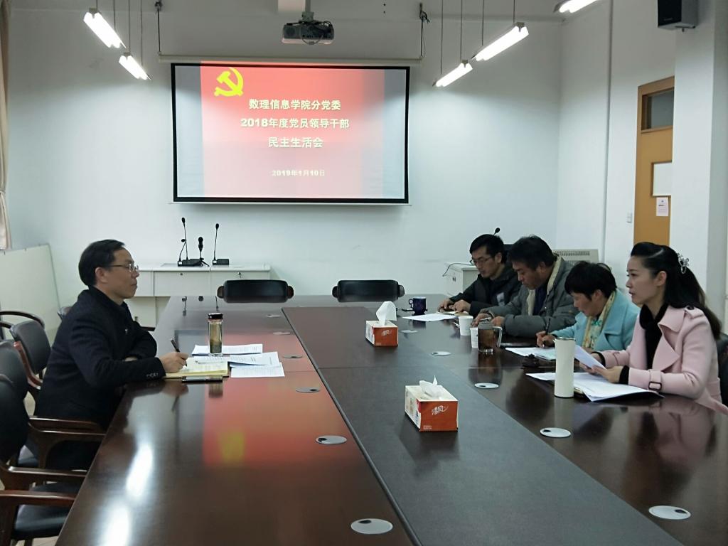 在411会议室召开2018年度党员领导干部民主生活会。校党委委员、校党委组织部部长宣绍龙到会指导。院领导俞军、周柳萍、盛宝怀、史正东,院党委委员吴海飞参加会议。会议由院党委书记周柳萍主持。