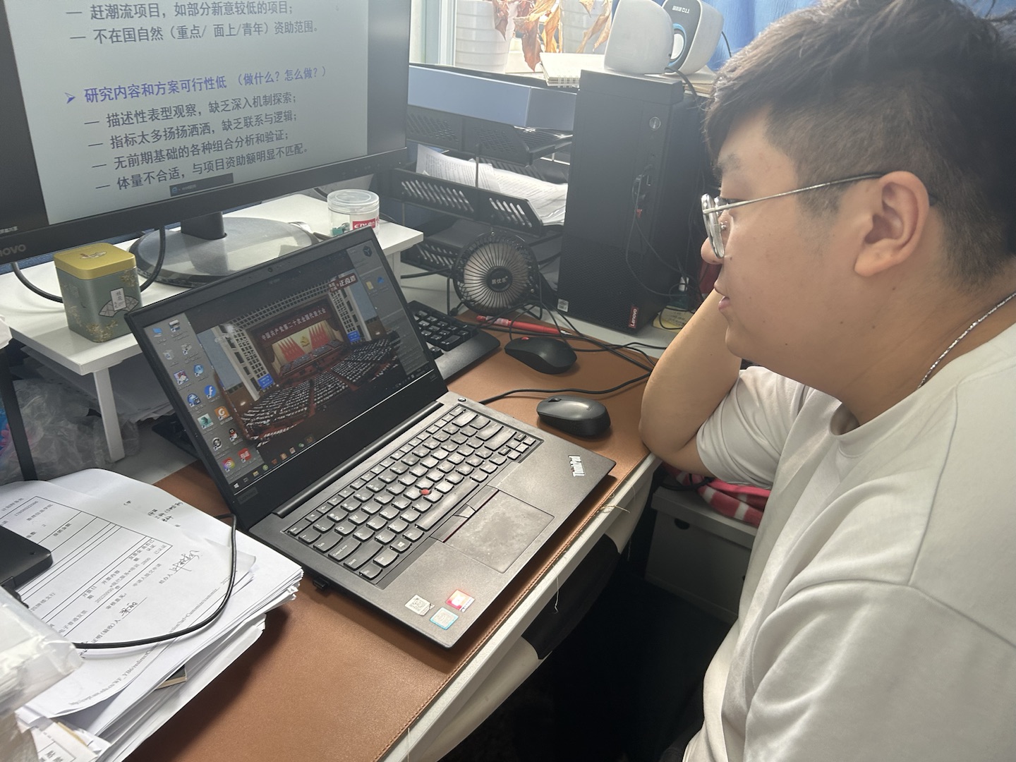 提前筹备,在严格落实疫情防控规定的前提下,开放1号楼415会议室、6号楼A205、A206、C202、C203-A等5个集中收看点,组织师生党员、青年学生等共计186人参加集中收看,其他所有师生均已不同的方式自行收看党的二十大开幕会。师生们以饱满的政治热情迎接党的二十大胜利召开,认真聆听习近平总书记的报告。