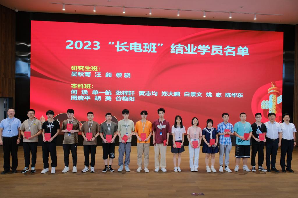 梁新夫为2023年“长电班”集成电路人才培训班结业学员颁发结业证书,史正东、陆波代表双方党组织签约并揭牌。