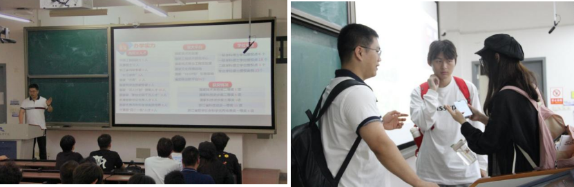 宣讲中,刘博士向同学们介绍了浙江农林大学的校园环境、地理位置,着重讲解了学校的专业历史、学科影响力、科研方向、师资队伍人才培养模式,并介绍了光学工程等硕士点的研究生培养模式。