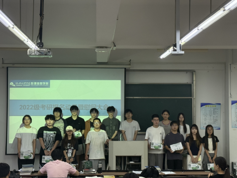 各专业考研导师们为本专业考研学子发放考研慰问品。