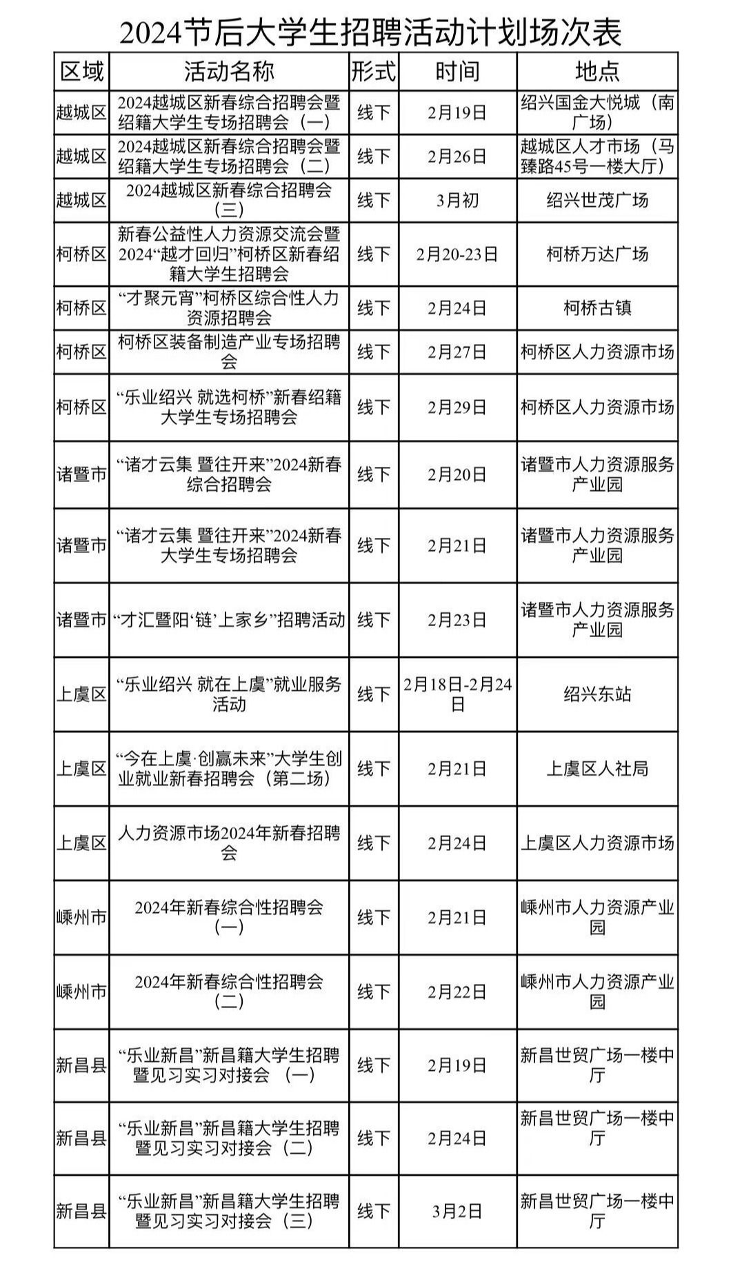 2024节后大学生招聘活动绍兴计划场次表
