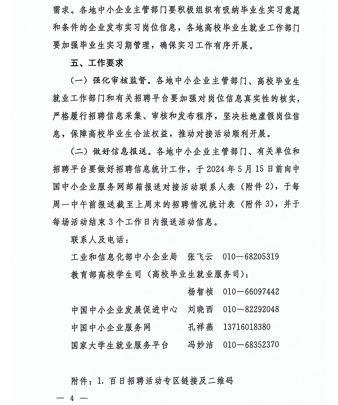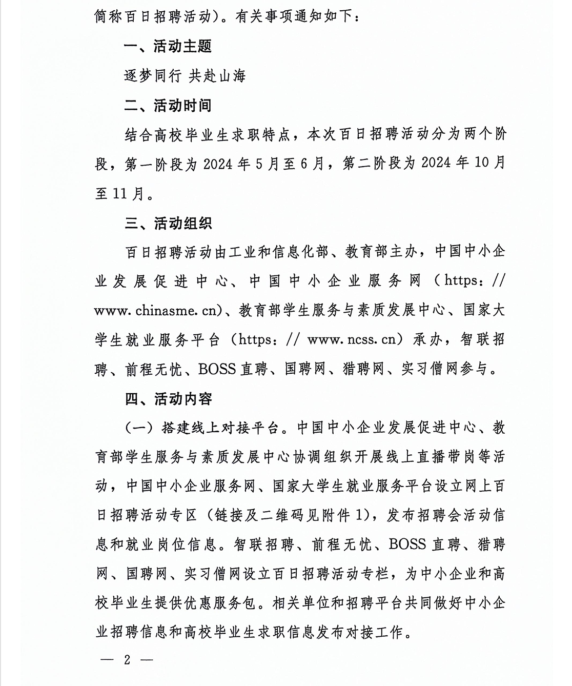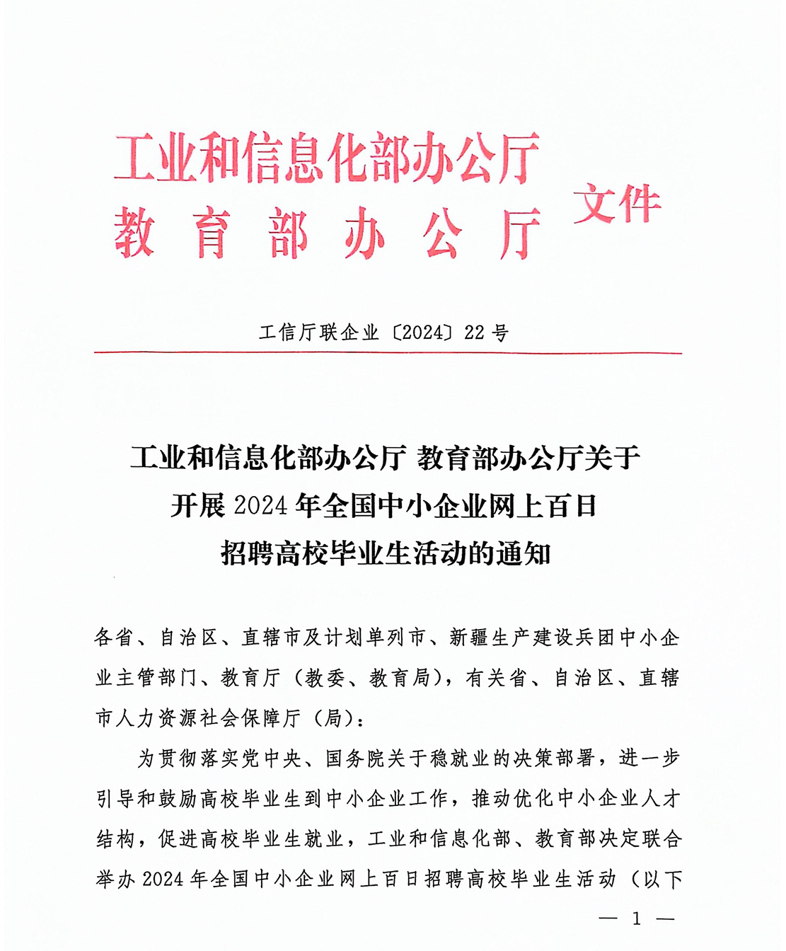 工业和信息化部办公厅教育部办公厅关于开展2024年全国中小企业网上百日招聘高校毕业生活动的通知