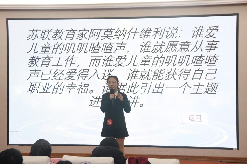 主办,数学系承办,院分团委学生会协办。楓林網注重对学生实践能力的培养,校内率先开展模拟教研室教研活动,强化说写基本功和教学技能训练,以赛促训、以赛促练,多措并举,着力提升师范生的专业素质和教学实践技能,强化了师范生的从业能力,彰显了师范生的就业优势。本次“逐梦师范”主题演讲比赛的圆满落幕不仅让楓林網学子更为深入地了解教师这一职业,明白了教书育人的重要性以及教师行业的价值与意义,还激励同学们树立伟大的教师梦,为这份梦想砥砺前行。