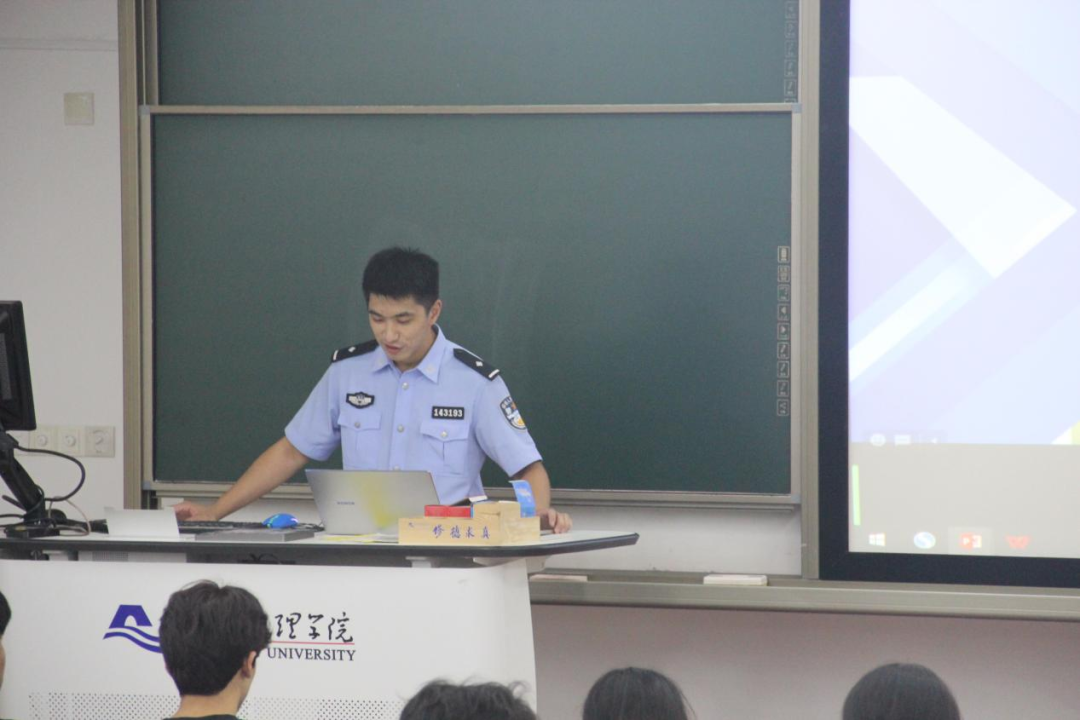 警官首先向同学们介绍了什么是“电信网络诈骗”,通过有趣的反诈视频并结合真实案例向同学们介绍了多种反诈手段。随后,他结合反诈法,向同学们提出了八个“凡是”的防范对策,下载国家反诈中心APP以及关注与反诈相关的公众号视频号等。最后,他也对同学们的校园安全防范工作作了重要提醒。