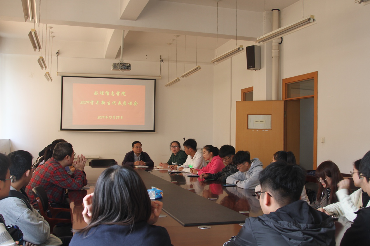 2019级新生代表座谈会在南山一号楼411会议室召开,参加本次座谈会的有学院党委副书记庞飞老师、辅导员汪秋月老师以及2019级各班学生代表。本次座谈会主要听取大家提的各方面建议和解答大家入学以来所遇到的学习、工作和生活上的各种困难。