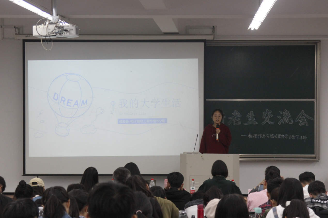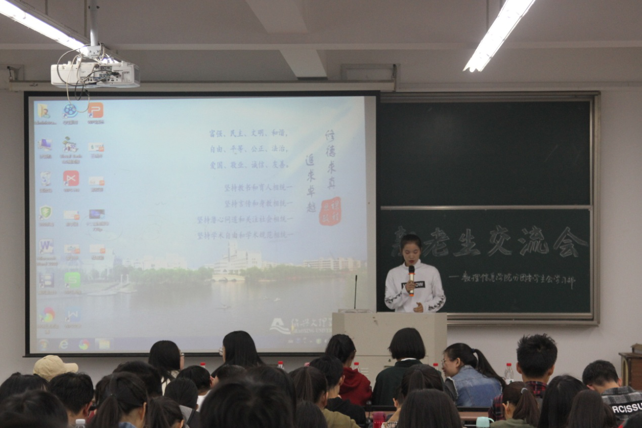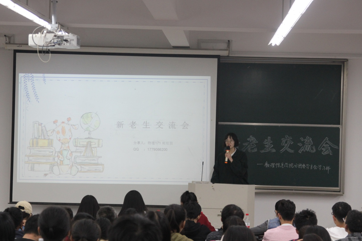 本次新老生交流会有幸邀请到的优秀学生代表如下:物理171班郑双羽、数学171班俞李涵、电信172班楼盈颖、应用统计171班王瑞芳和微电171班霍玉苓。