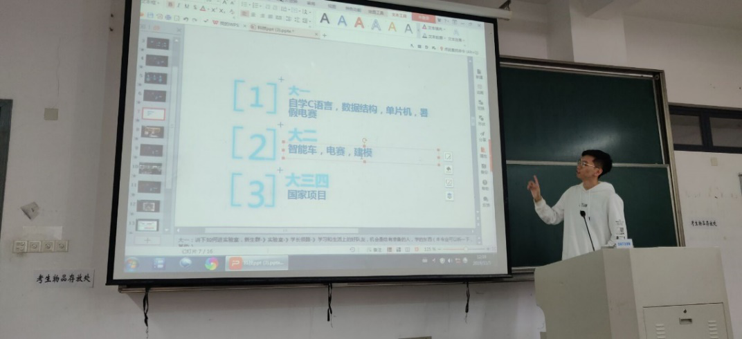 在6号楼A208进行2019级电子信息类专业思想教育之优秀校友交流会。本次交流会特邀已考取复旦大学硕士研究生的2015级优秀校友刘晓辉主讲。