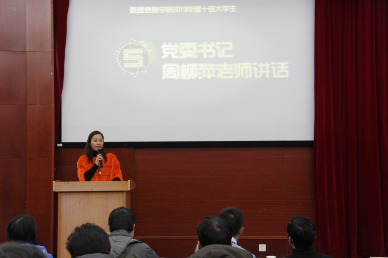 党委书记周柳萍老师对本年度“十佳大学生”评选会做了总结讲话。首先,她肯定了数理学子积极进取、吃苦耐劳的优秀精神。其次,她表示本次评选会是一场精神的盛宴,从这些候选人身上看到了枫林网