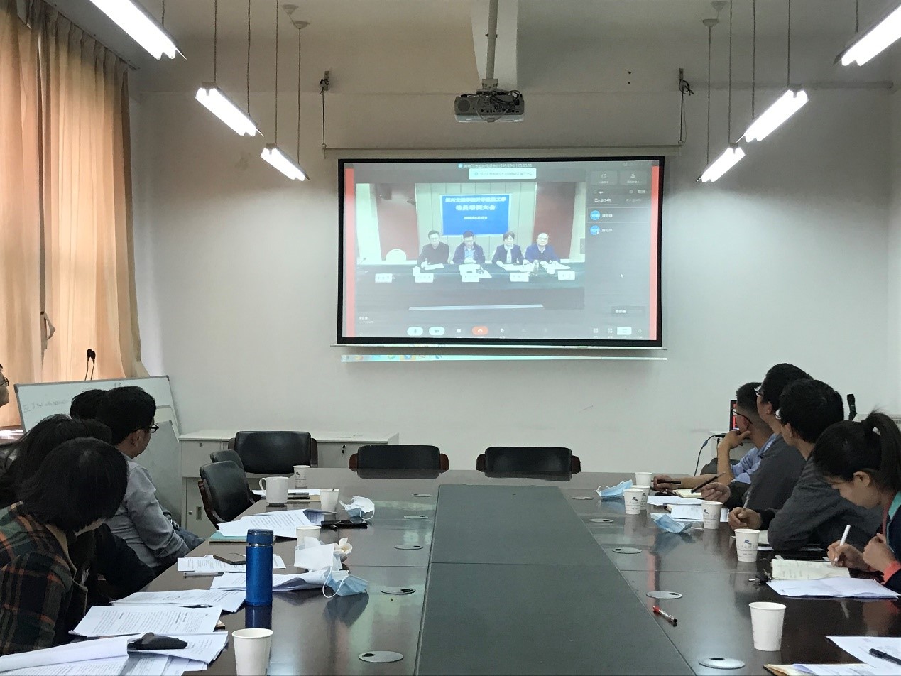 4月27日下午,学院在411会议室召开返校学习布置会,科级干部、辅导员和班主任参加会议,会议由学院党委副书记庞飞主持。与会人员通过钉钉参加了绍兴文理学院开学返校工作动员培训大会视频会议,认真学习了学校关于返校学习的工作要求。