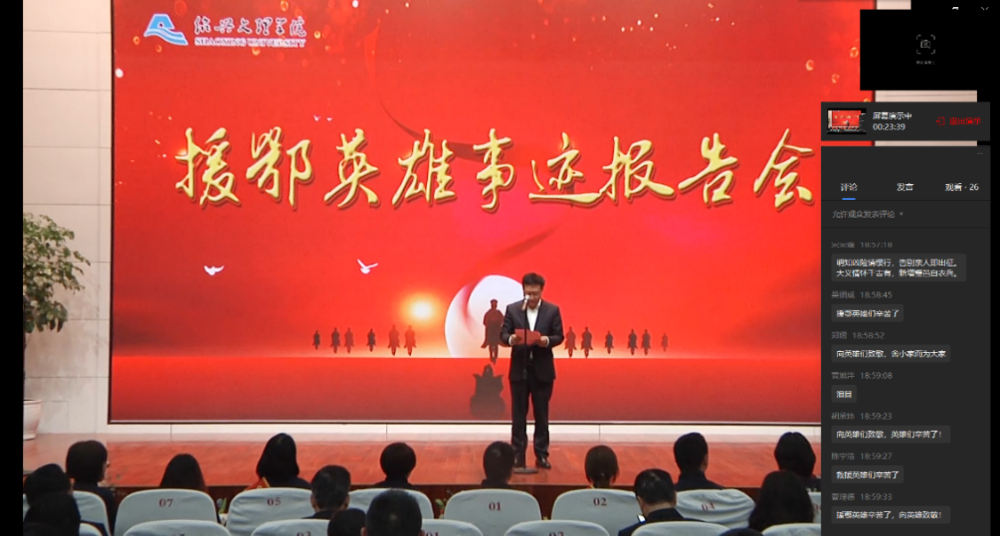 “开学第一课”活动以观看我校附属医院援鄂英雄作事迹报告视频的方式进行。