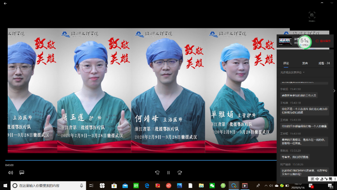 此次“开学第一课”通过赞颂我校附属医院援鄂英雄的伟大事迹,弘扬援鄂英雄舍己为人的无私奉献精神,培养枫林网