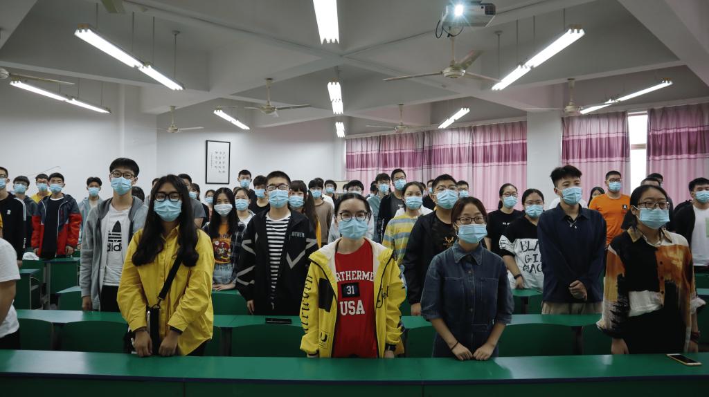 国歌响起,全体师生起立,庄严肃穆,齐唱国歌。国歌结束,庄重的开学典礼正式开始。